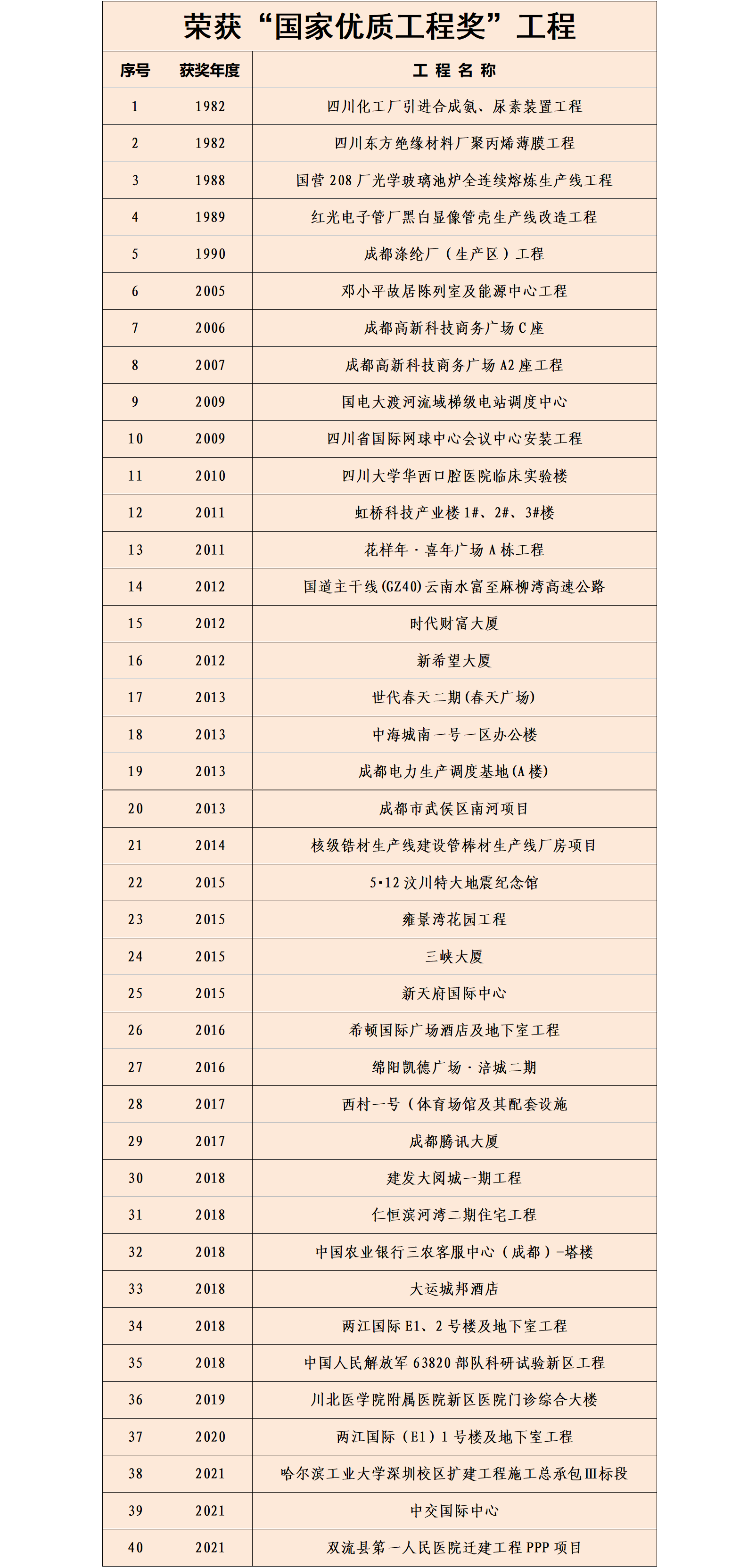 荣获国家优质工程奖40项