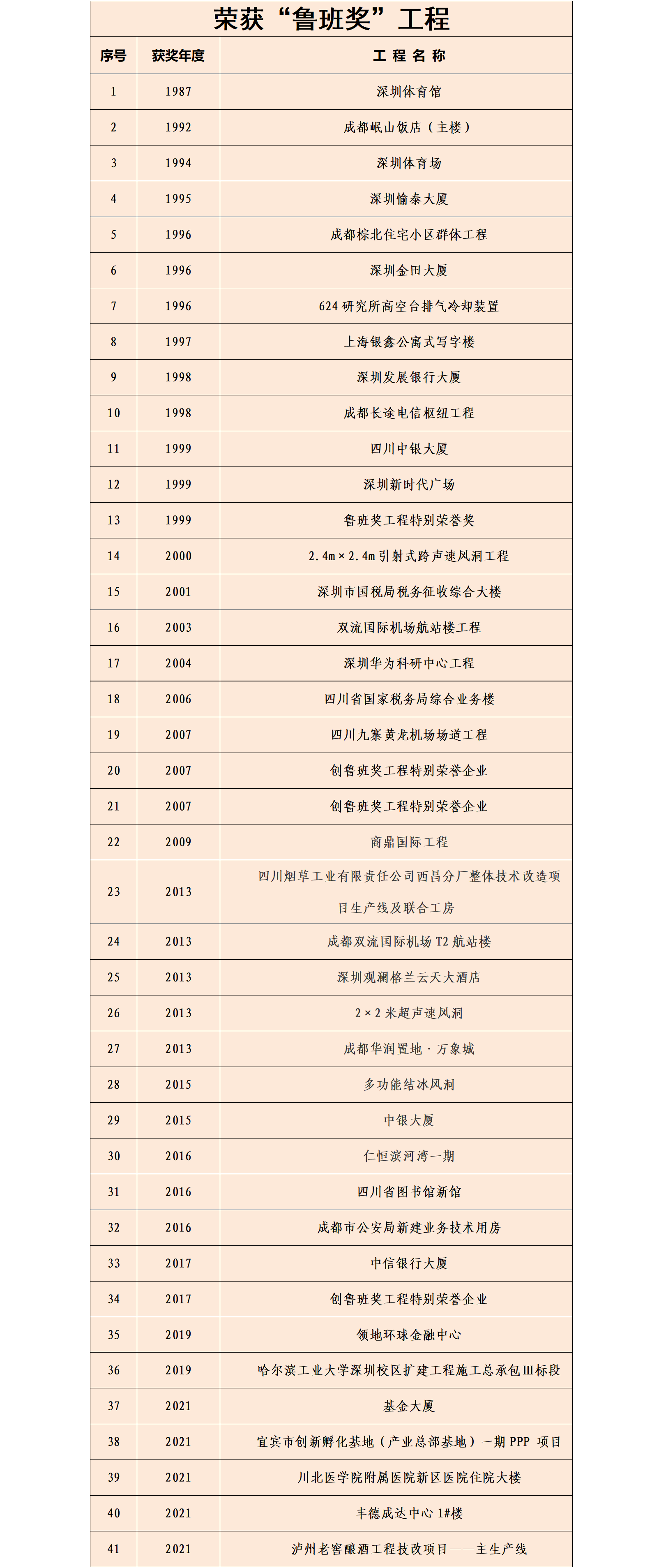 荣获“鲁班奖”及“创鲁班工程特别荣誉奖”41项